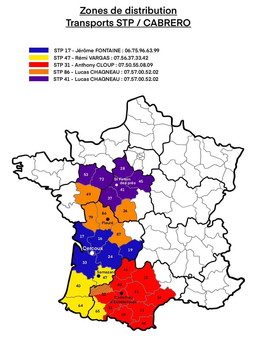 Contact: Chagneau Lucas: 07 57 00 52 02 - logistique86@stpcabrero.fr